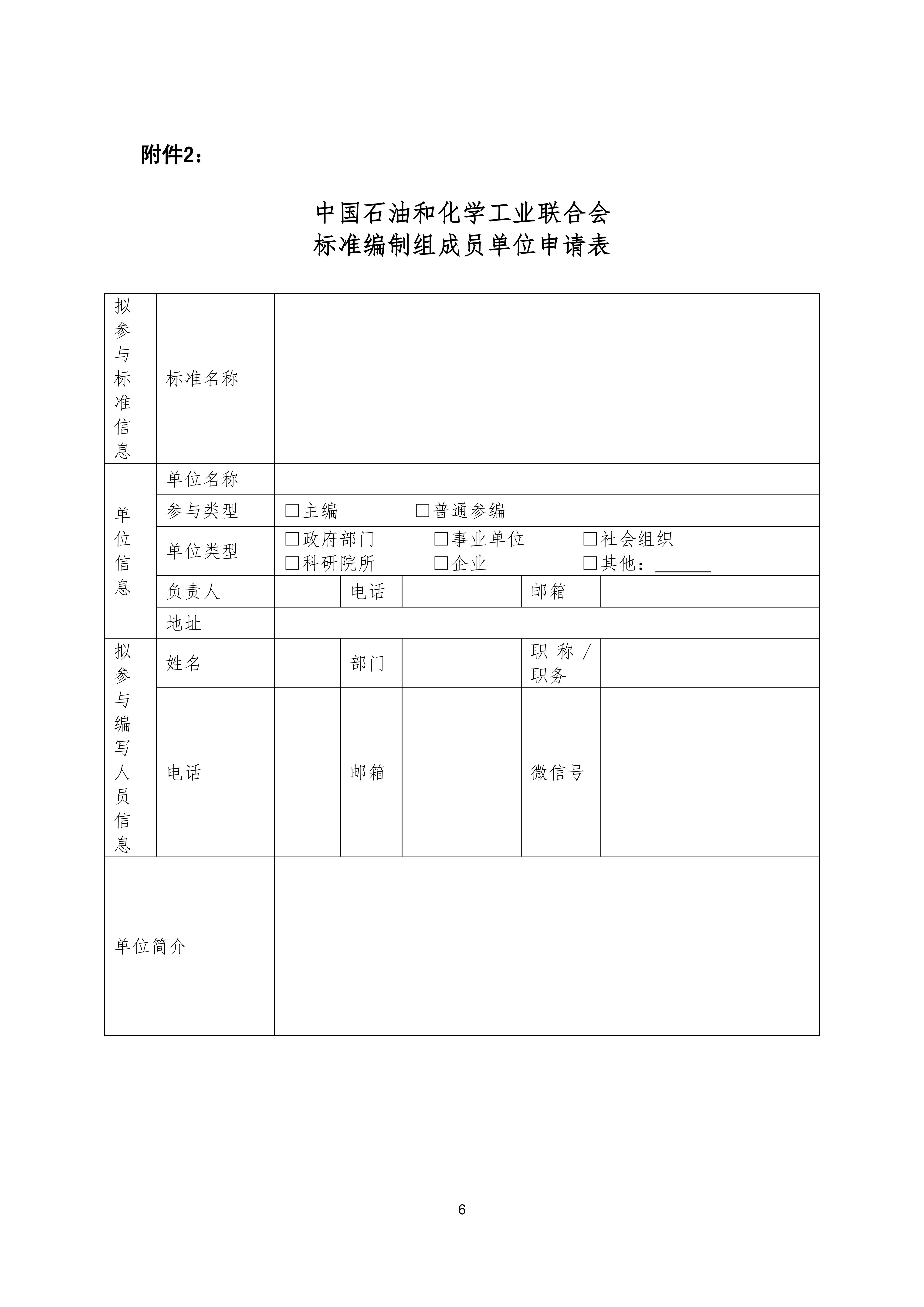 2.中国石油和化学工业联合会标准编制组成员单位申请表